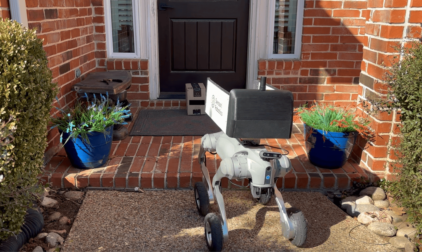 Sensori’s DeliveryDog platform augments the delivery driver by autonomously handling curb-to-door movement across steps, winding walkways, and uneven terrain. By operating as coordinated support units, our systems increase stops per hour while allowing drivers to remain route-focused and vehicle-based. Autonomous delivery support delivers consistent, scalable capacity — improving per-route efficiency without proportional increases in labor.